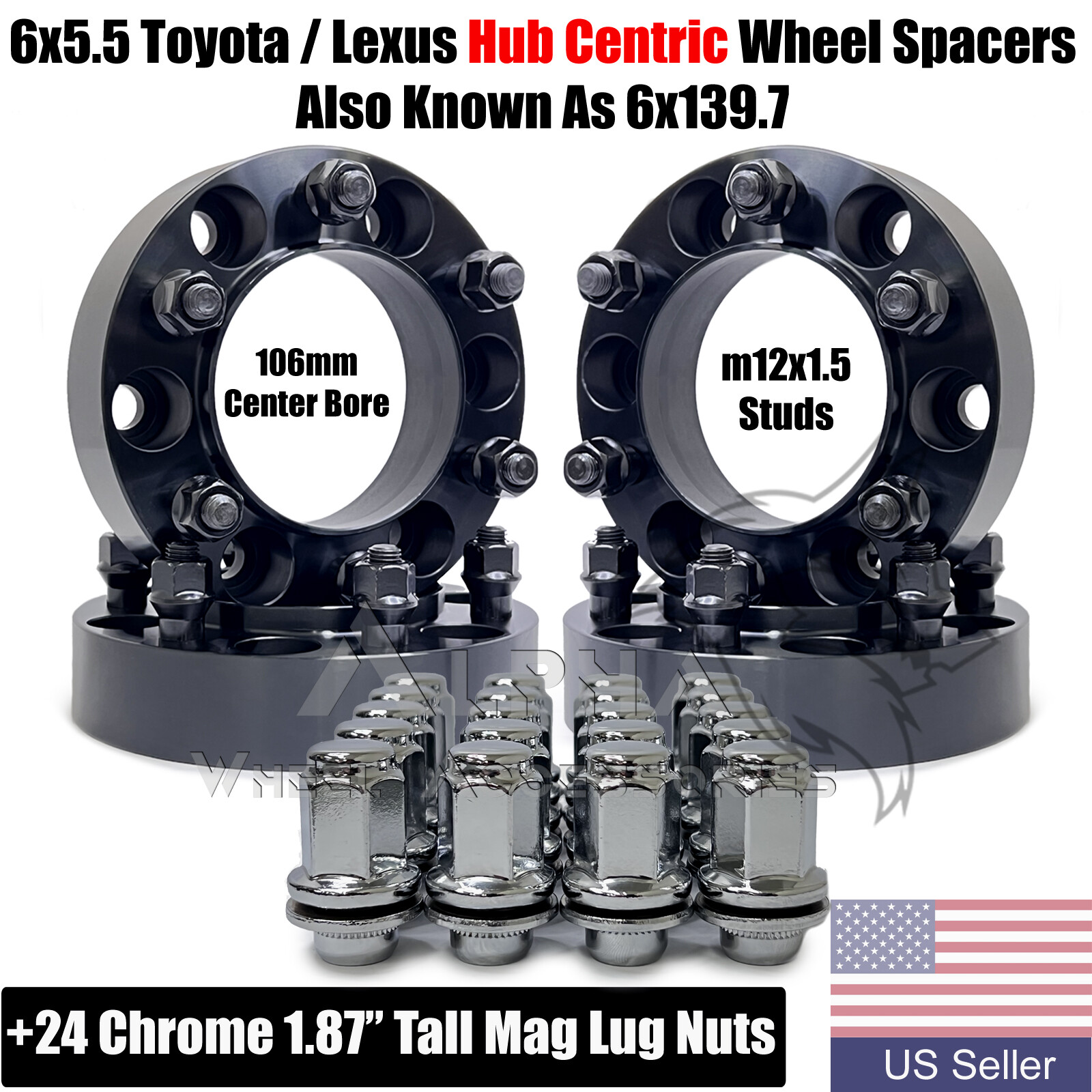 4 Hub Centric 6x5.5 Wheel Spacers 1.5" For Toyota Lexus + 24 Chrome Mag Lug Nuts