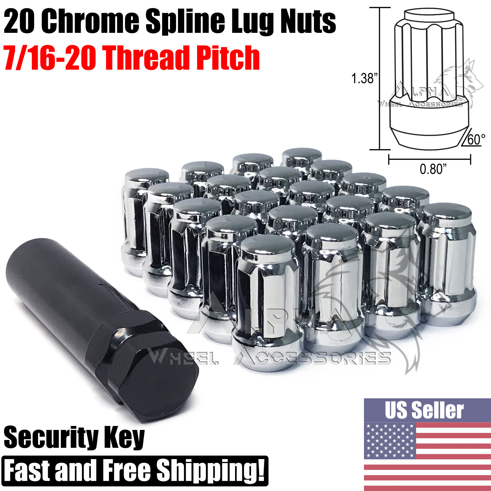 - Complete Set of 20 Chrome Steel Spline Lug Nuts