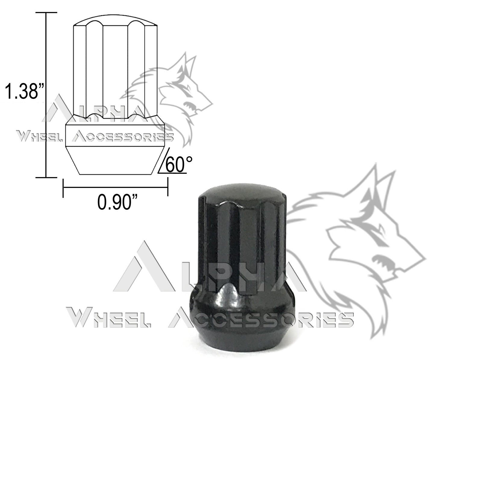 1 Black Short Spline M14x1.5 Lug Nut 7 Spline 1.38" Tall Conical Cone Seating