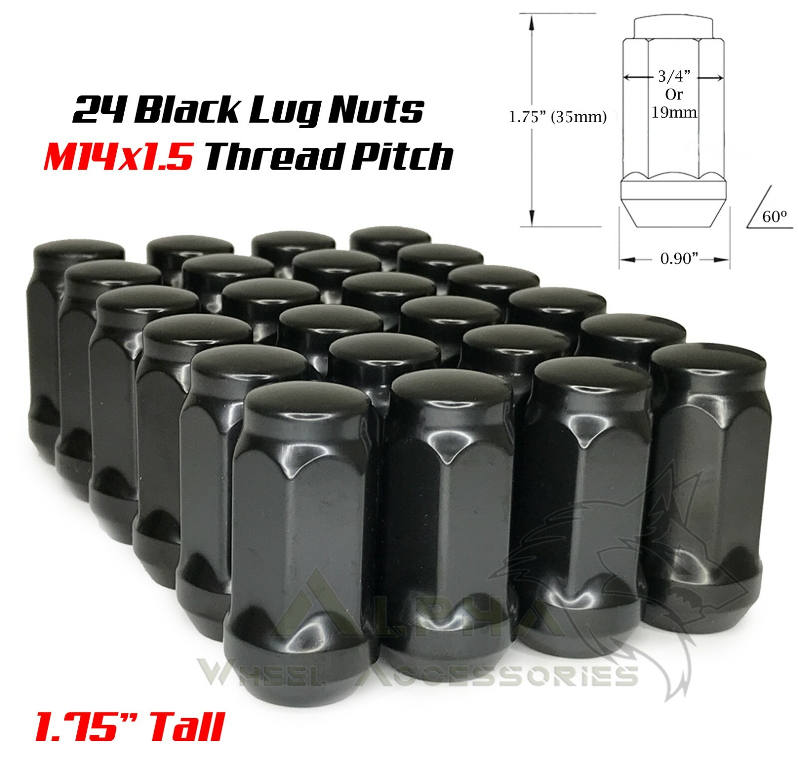 24 Black 14x1.5 Bulge Acorn Lug Nuts 1.75" For 2022 & Newer Toyota Tundra 6 Lug