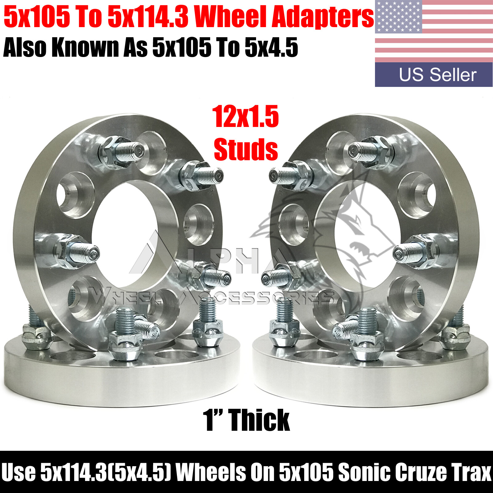 4Pc 5x105 To 5x114.3 (5x4.5) Wheel Adapters 1" Thick Fits Sonic Cruze Trax