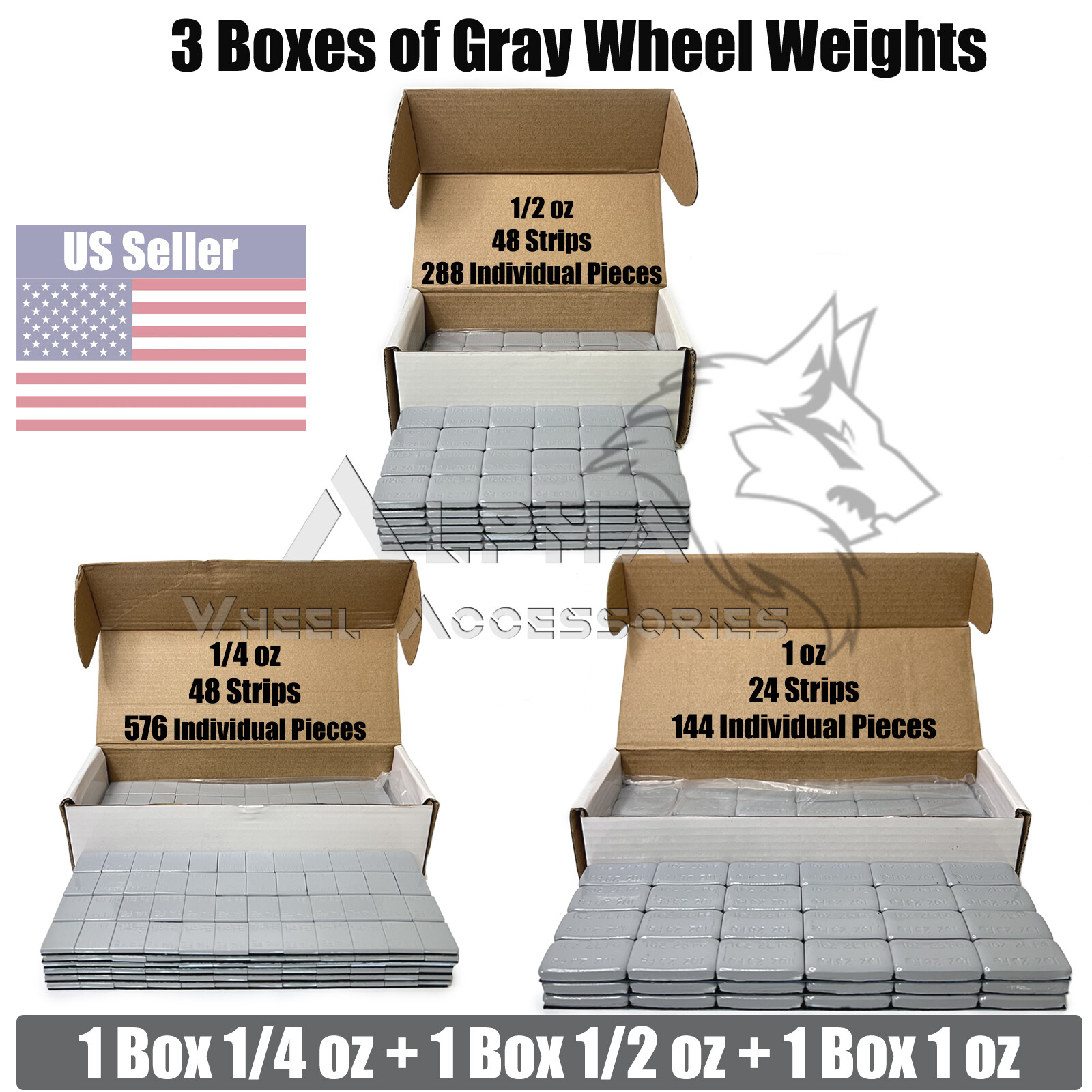 - 3 Boxes of Gray 1/2oz + 1/4oz + 1oz Wheel Weights